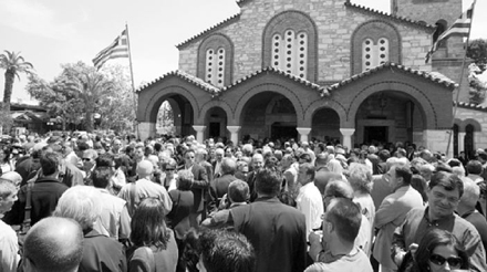 Κόσμος είχε αρχίσει να γεμίζει τον ναό από νωρίς, για να προλάβει να προσκυνήσει τη σορό του δημοσιογράφου, ραδιοφωνικού παραγωγού και ερευνητή του λαϊκού τραγουδιού - και, πάνω απ' όλα, του Καλού Ανθρώπου. Και να συμπαρασταθεί στην αγαπημένη του γυναίκα, τη Ναυσικά, στον αδελφό του, στη νύφη του και στα ανίψια του.